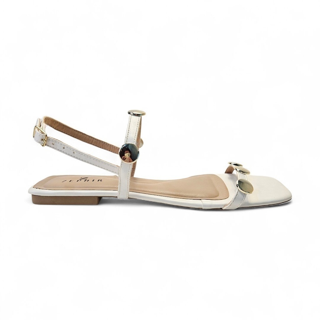 A Sandália Melina Branca Zephir é a tradução perfeita da leveza com um toque de sofisticação. O design minimalista ganha destaque com os delicados detalhes em esferas metalizadas, que trazem brilho e elegância na medida certa.
